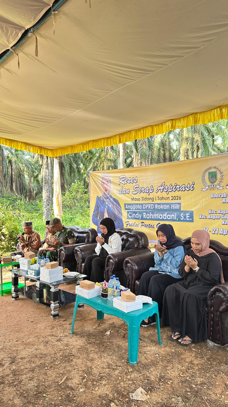 Anggota DPRD Cindy Rahmadani dari Fraksi Golkar, daerah pemilihan (Dapil) IV, Kabupaten Rokan Hilir ,melaksanakan kegiatan reses masa sidang satu tahun 2026. Kegiatan berlangsung di Pondok Dua, Divisi 34, Kebun Sei Dua, Kelurahan Balai Jaya, Kecamatan Balai Jaya, pada Minggu (19/04/2026).