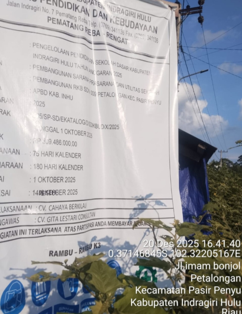 Pembangunan Ruang Kelas Baru (RKB) SD Negeri 009 Petalongan yang berlokasi di Kecamatan Pasir Penyu, Kabupaten Indragiri Hulu, menuai keluhan dari sejumlah guru dan wali murid. Pasalnya, bangunan yang baru saja diserahterimakan tersebut dinilai tidak memenuhi kualitas yang diharapkan.