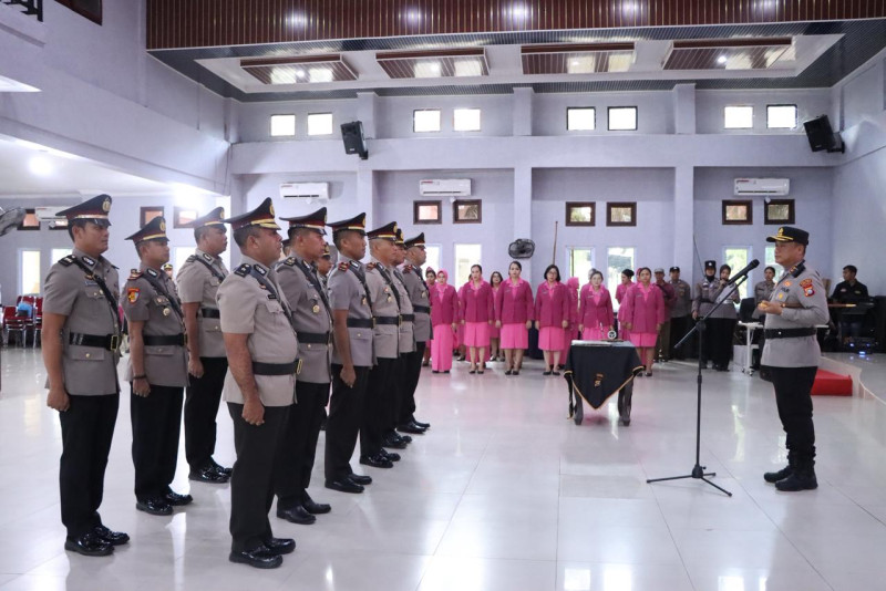 Upacara dipimpin langsung oleh Kapolres Rokan Hilir AKBP Isa Imam Syahroni, S.I.K., M.H., dengan dihadiri pejabat utama, Kapolsek jajaran, serta pengurus Bhayangkari. Suasana prosesi berlangsung tertib dan penuh disiplin sesuai protokol Polri.